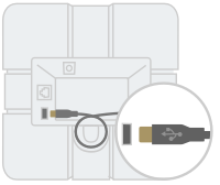 - في أحد مكبِّرات الصوت مع الميكروفون، في منفذ USB الصغير، أدخِل كابل USB ووصّله بجهاز Chromebox.