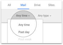- Nguồn Google (Thư, Drive, Sites, Groups, Lịch) — Nhấn vào Mọi lúc hoặc một trong các bộ lọc phụ khác, sau đó nhấn vào một lựa chọn trong danh sách.