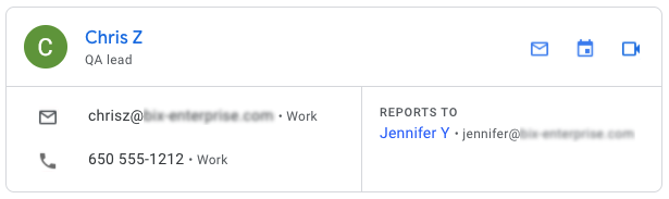 Nota: puoi vedere le informazioni del contatto e del suo responsabile solo se la tua organizzazione aggiunge questi dati del profilo agli account utente.
